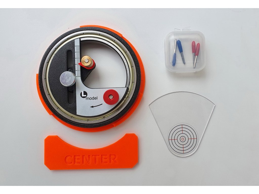 Centrovač a doraz centrovače jsou určeny pro zaměření středu na volných místech řezaném materiálu: Přesnost cenrovače se pohybuje cca do 0,2mm.